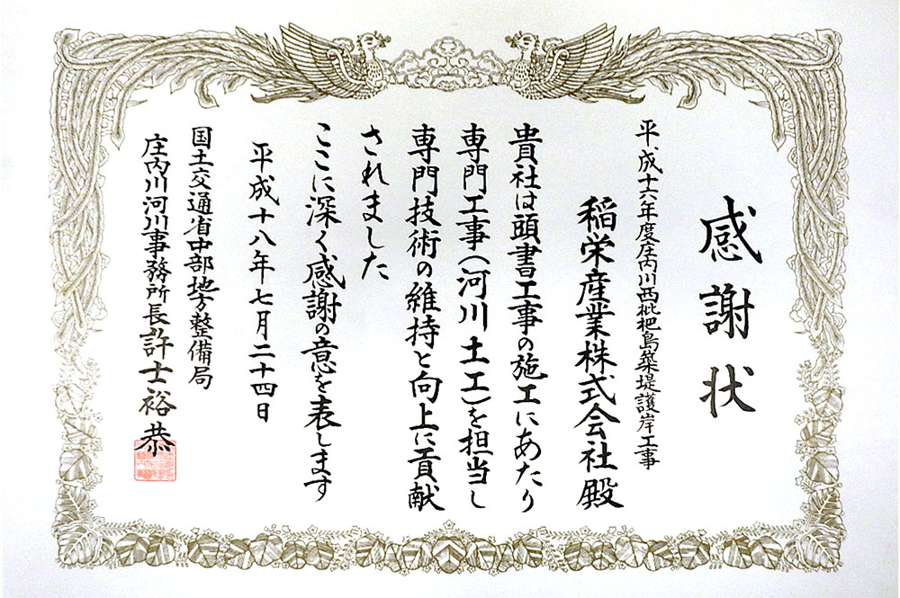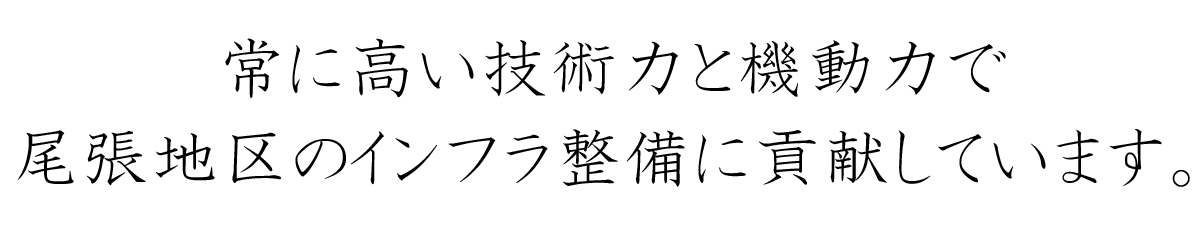 | 主な取引先 | 国土交通省中部地方整備局、日本下水道事業団、愛知県、稲沢市、清須市、尾張旭市、あま市、UR都市再生機構、宮田用水土地改良区、 福田悪水土地改良区等(公共施設団体) その他民間企業 等 |